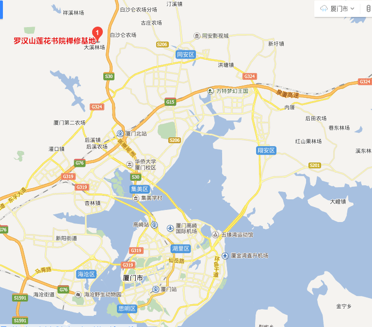 厦门高崎机场T3、T4航站楼:乘BRT快2线到同安枢纽站,然后打车到罗汉山禅修基地。(同安枢纽站到罗汉山基地仅10公里)