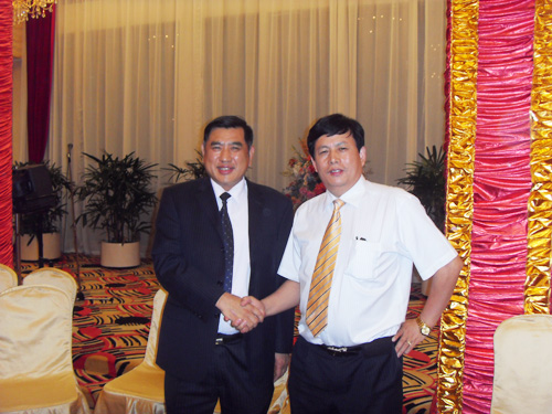 负责大陆事务常务副理事长Peter陈振贵与台湾总会黄文章理事长,合影留念。