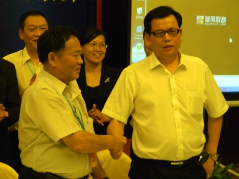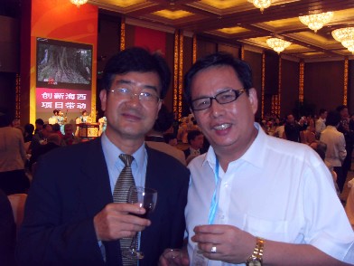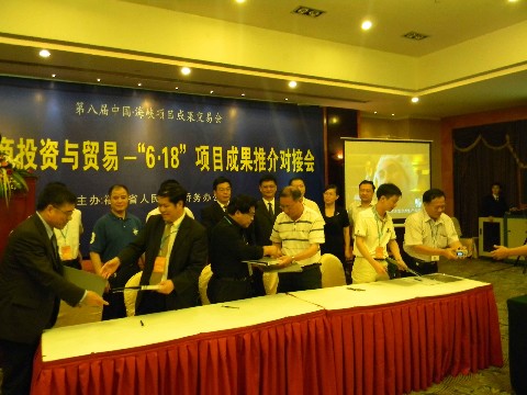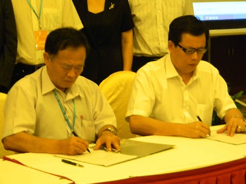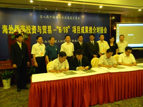 618期间在中国 国务院侨办和福建省侨办领导关心支持下陈主席与台北发明人协会蔡理长扩大 投资领域节能低碳 环保LED节能灯和PLA玉米淀粉高科技环保产品、以及汽车节能减排、瓦斯炉节能产品在大陆投资设立总部现场签约仪式